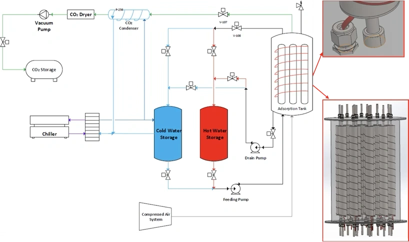 פיתוח אב־טיפוס חדשני ללכידת פחמן דו־חמצני מהאוויר, שמיועד להזין מערכת לגידול אצות. הפרויקט כולל מחקר ופיתוח ראשוני, בחינת טכנולוגיות, בניית מדגים מעבדתי והתקנת פיילוט מלא באתר הלקוח. המערכת תפעל באתר במשך שנה לצורך בחינת ביצועים רציפה. החברה מובילה את כל שלבי הפרויקט במתכונת EPC מלאה הכוללת תכנון, רכש, ייצור, הרכבה והפעלה.